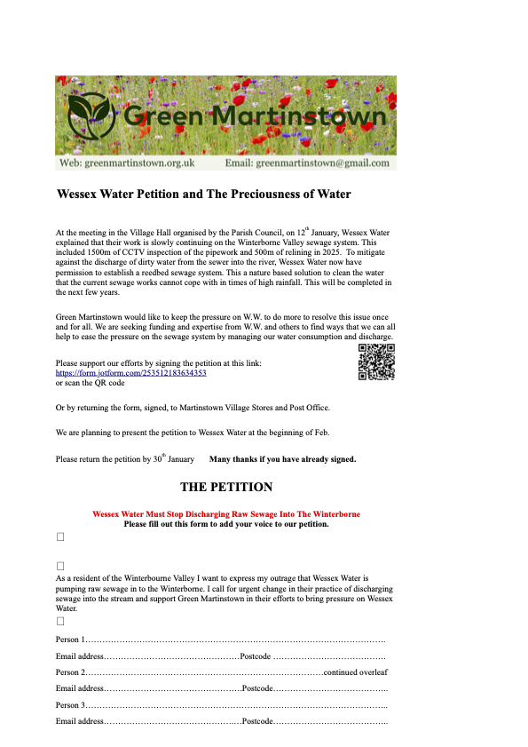 Green Martinstown will present the petition to Wessex Water at the beginning of February.